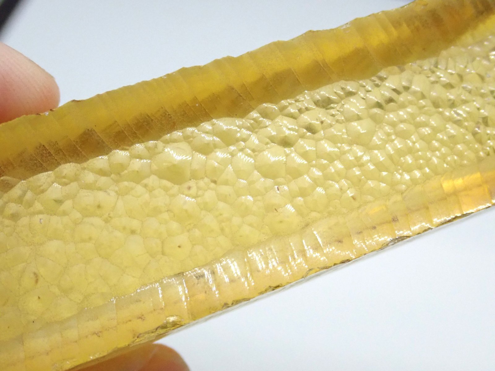 透明な板状の種結晶が用いられる為、中心に透明な部分があります。