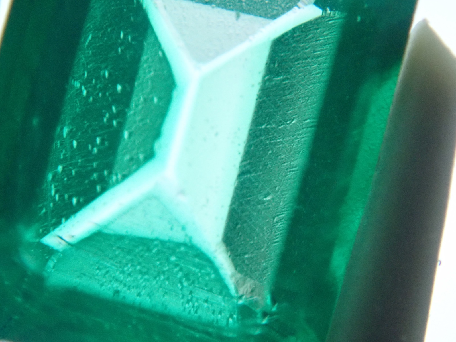 オーバーグロースとは、透明なベリルの表面に、合成エメラルドを薄く成長させたものです。