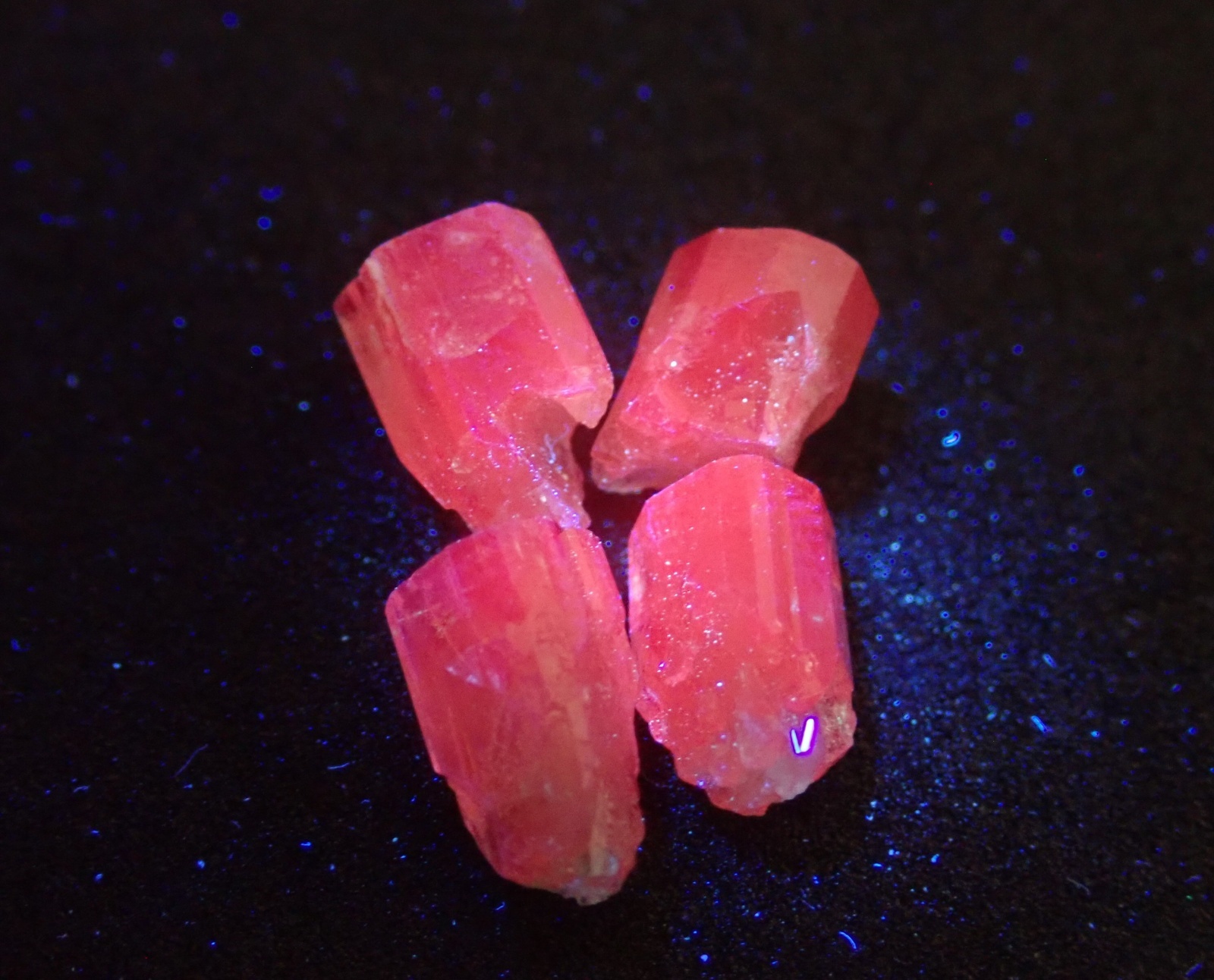 長波紫外線ライトで、うっすら赤く蛍光します。
