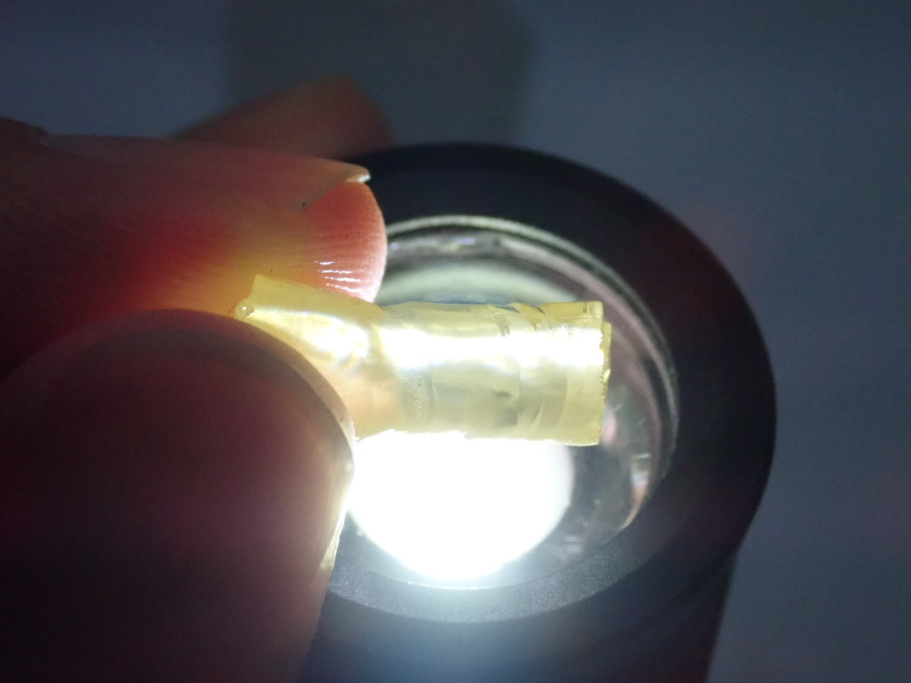 製造の最初の段階の部分で、まだ軸が安定しておらず、くねくねしています。
