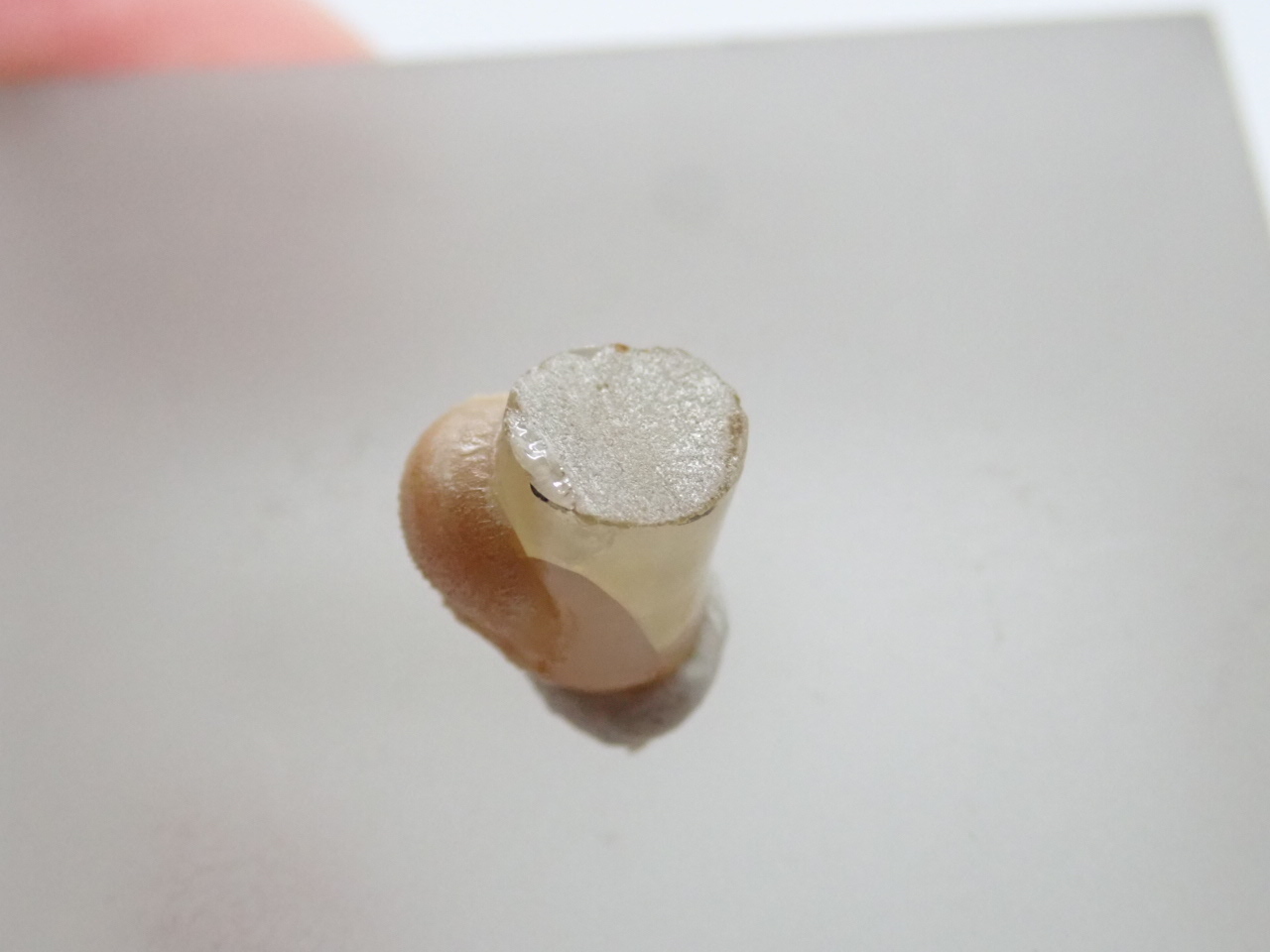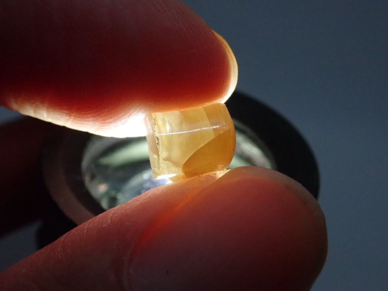 こちらは合成ルチルらしい、飴色のサンプルです。