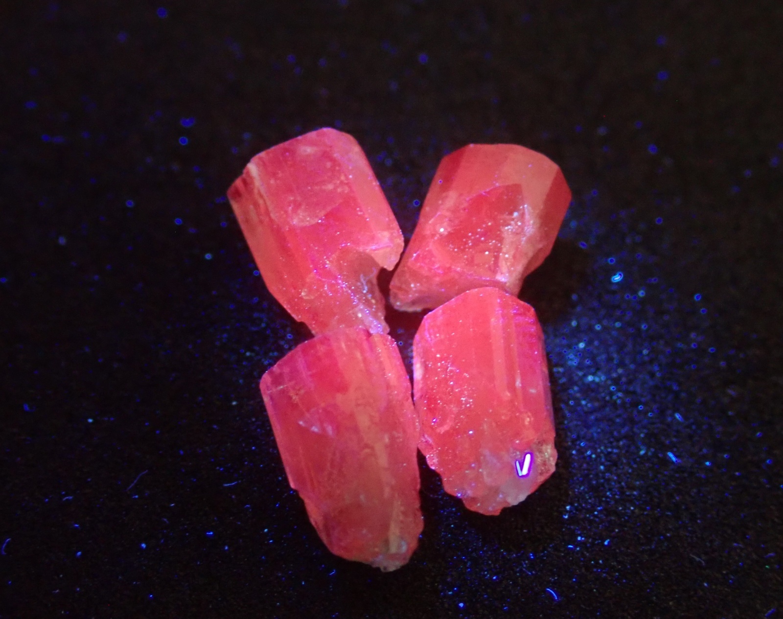 長波紫外線ライトで、うっすら赤く蛍光します。