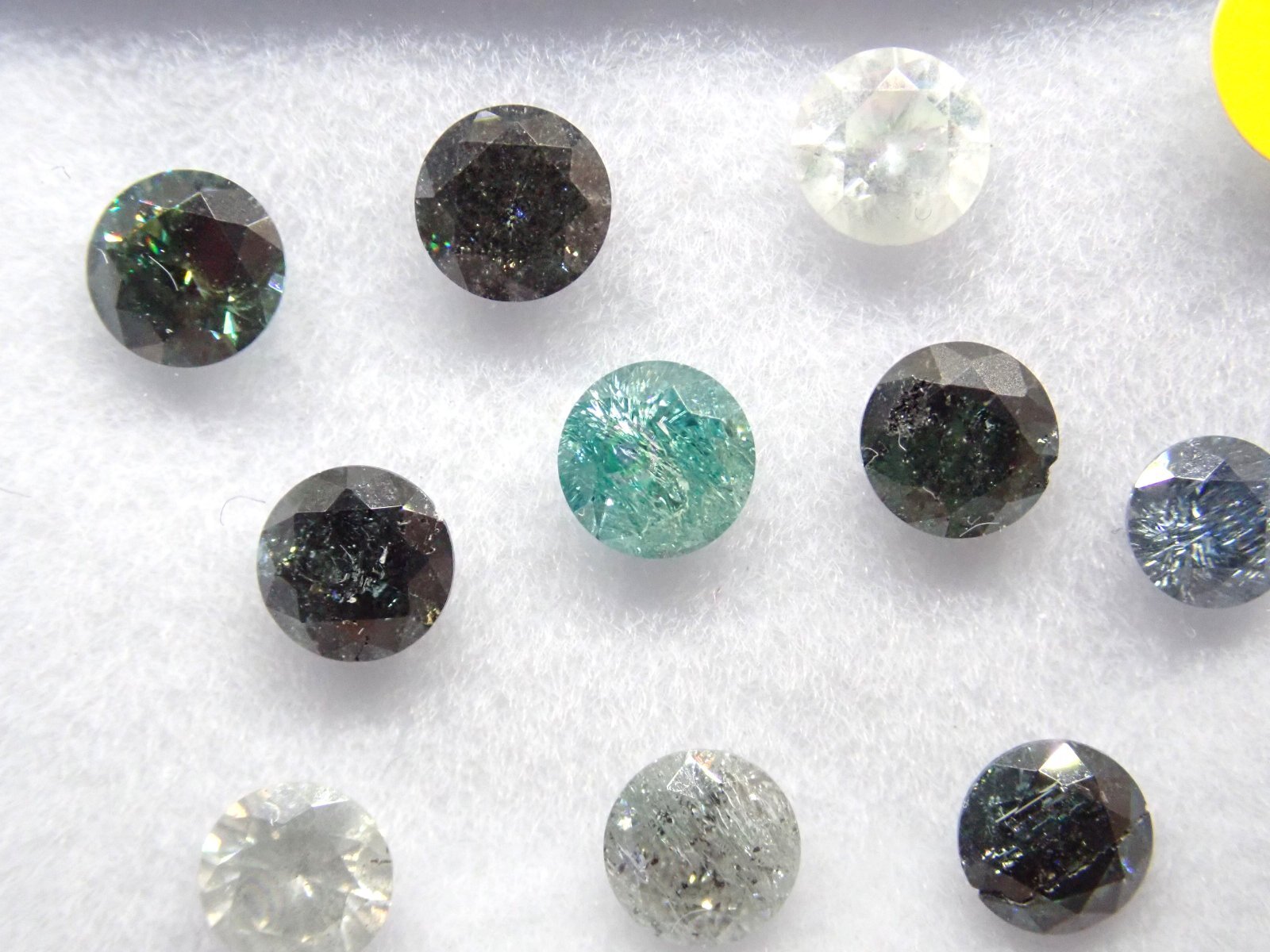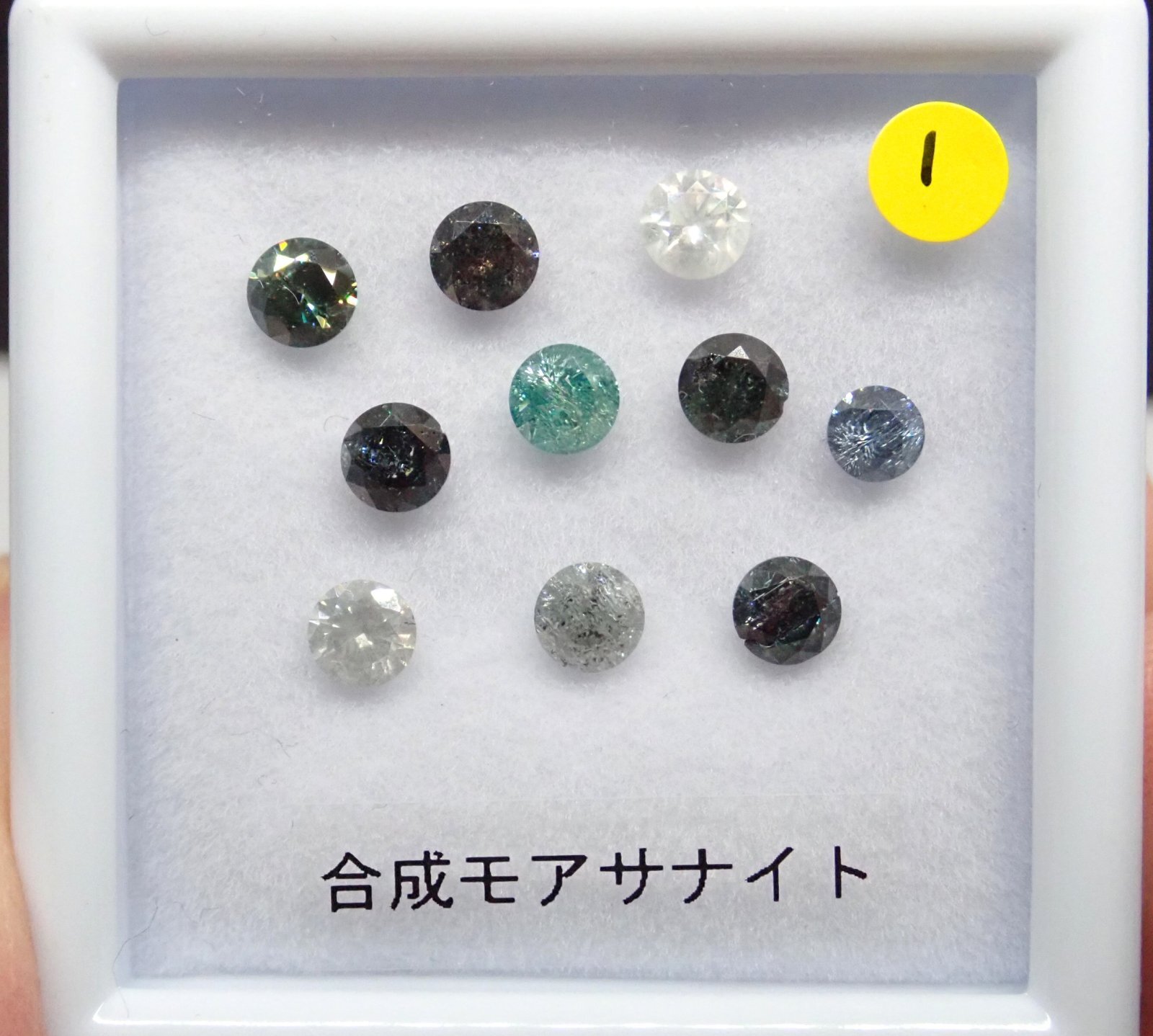 クラックや内包物、色ムラのある合成モアサナイトのセットです。