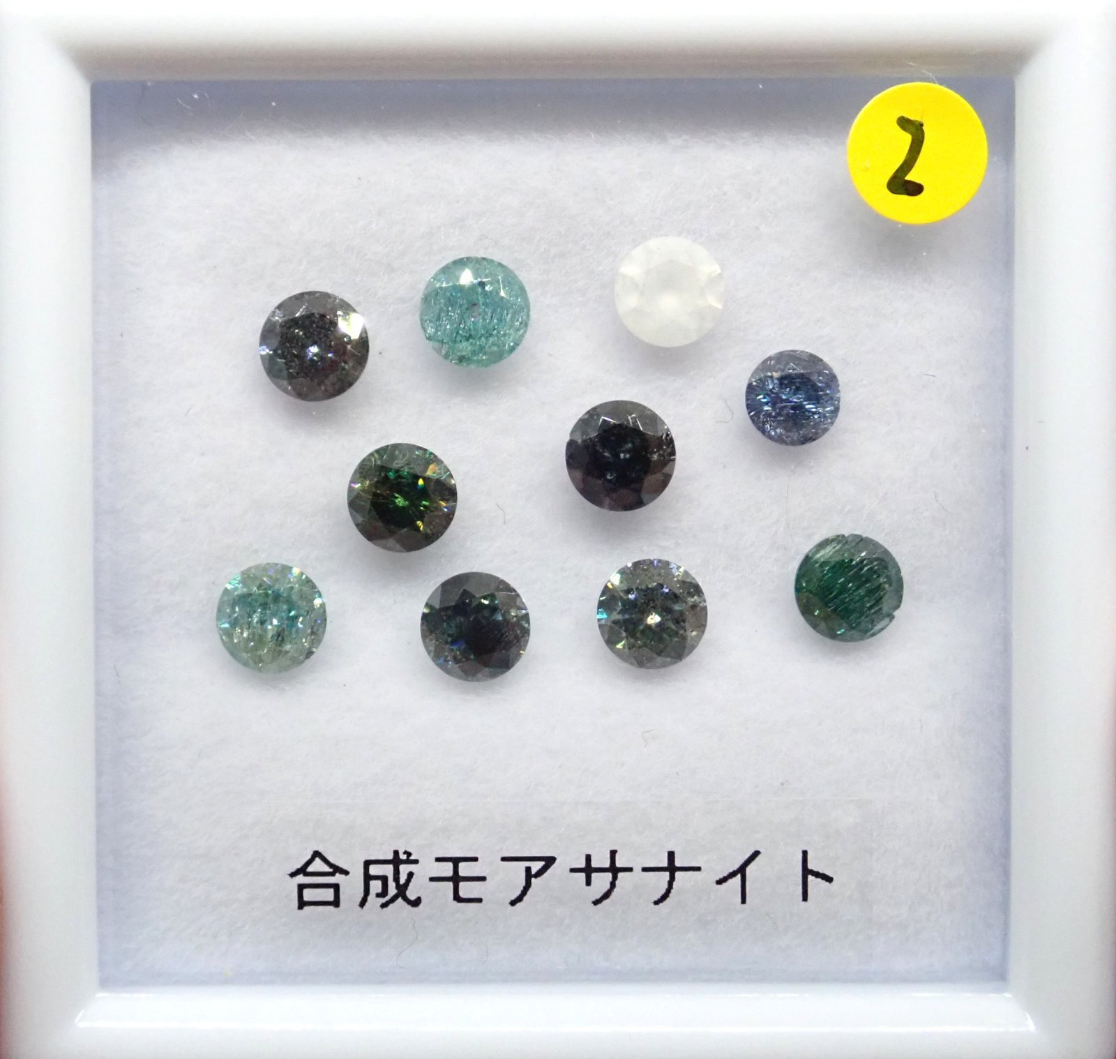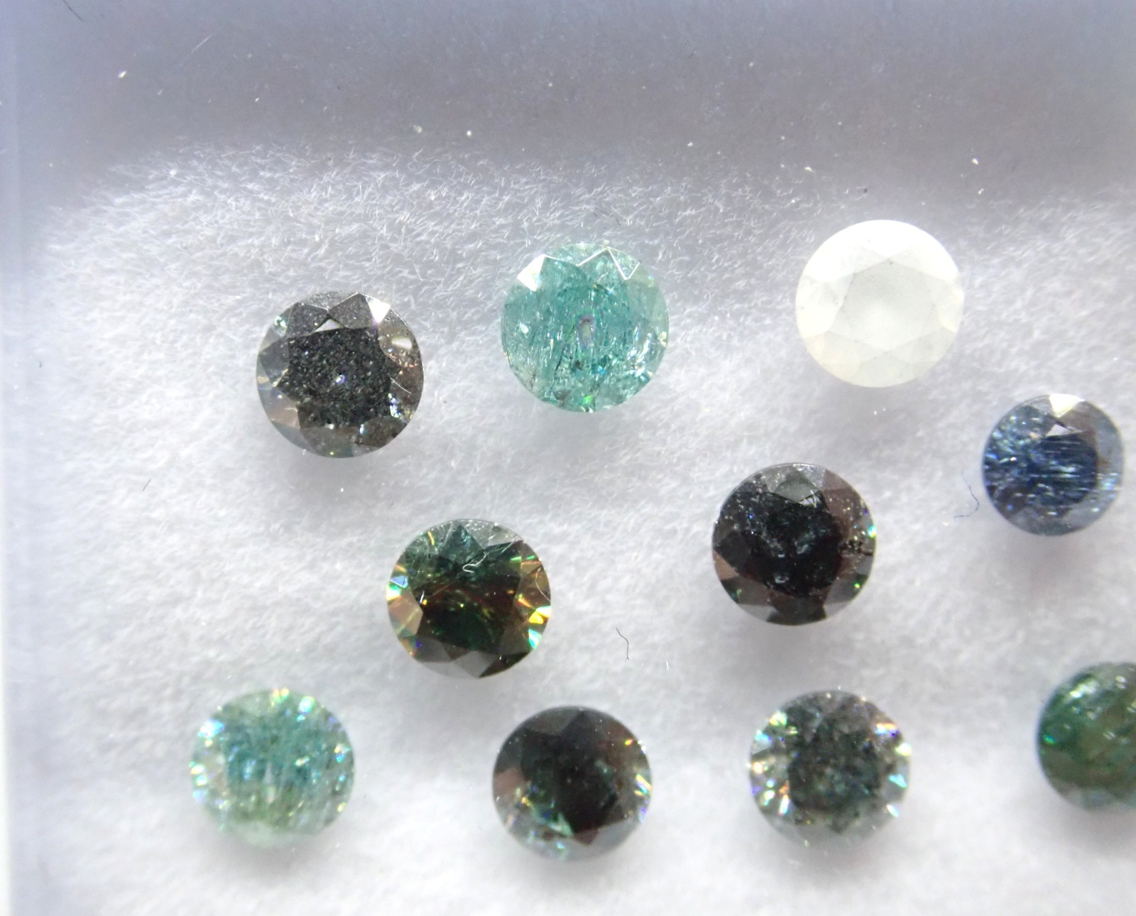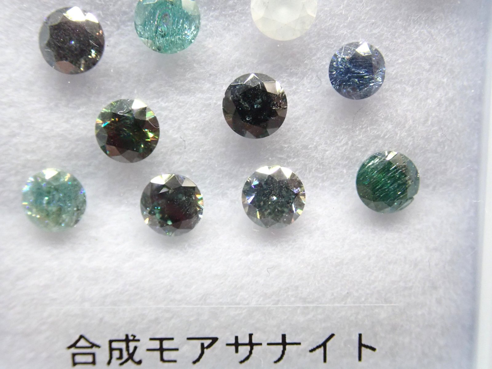 クラックや内包物、色ムラのある合成モアサナイトのセットです。