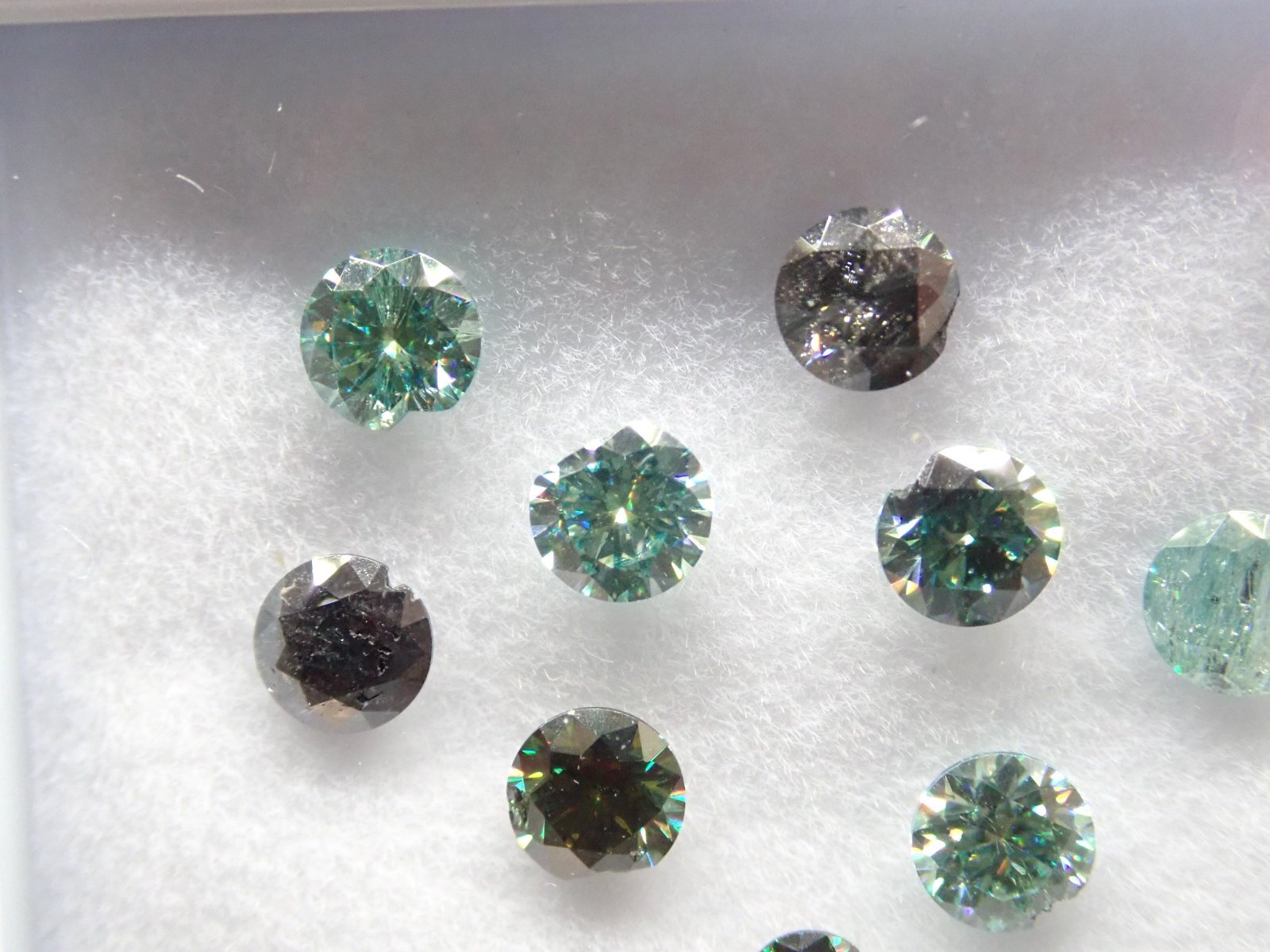 クラックや内包物、色ムラのある合成モアサナイトのセットです。